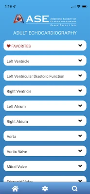 ASE’s EchoGuide provides access to over 50 calculators, algorithms, and charts. EchoGuide was developed based on key ASE guidelines for use by healthcare professionals providing cardiac care. One special feature in the app is that users have the ability to select their favorite interactive tools for easy access.
