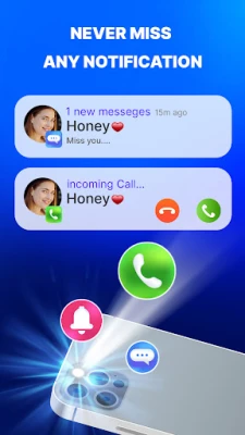 Never miss an important notice again. Get instant flash alerts that light up your phone for calls, SMS, and app notifications. Flashlight when incoming call and text feature is perfect for silent or noisy environments.
