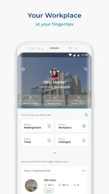 • Find your way to your booked space with guidance on a floor plan