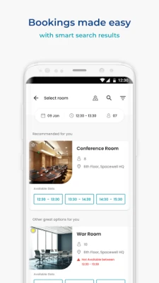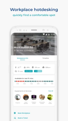 • Quickly find (and book) free rooms or desks
